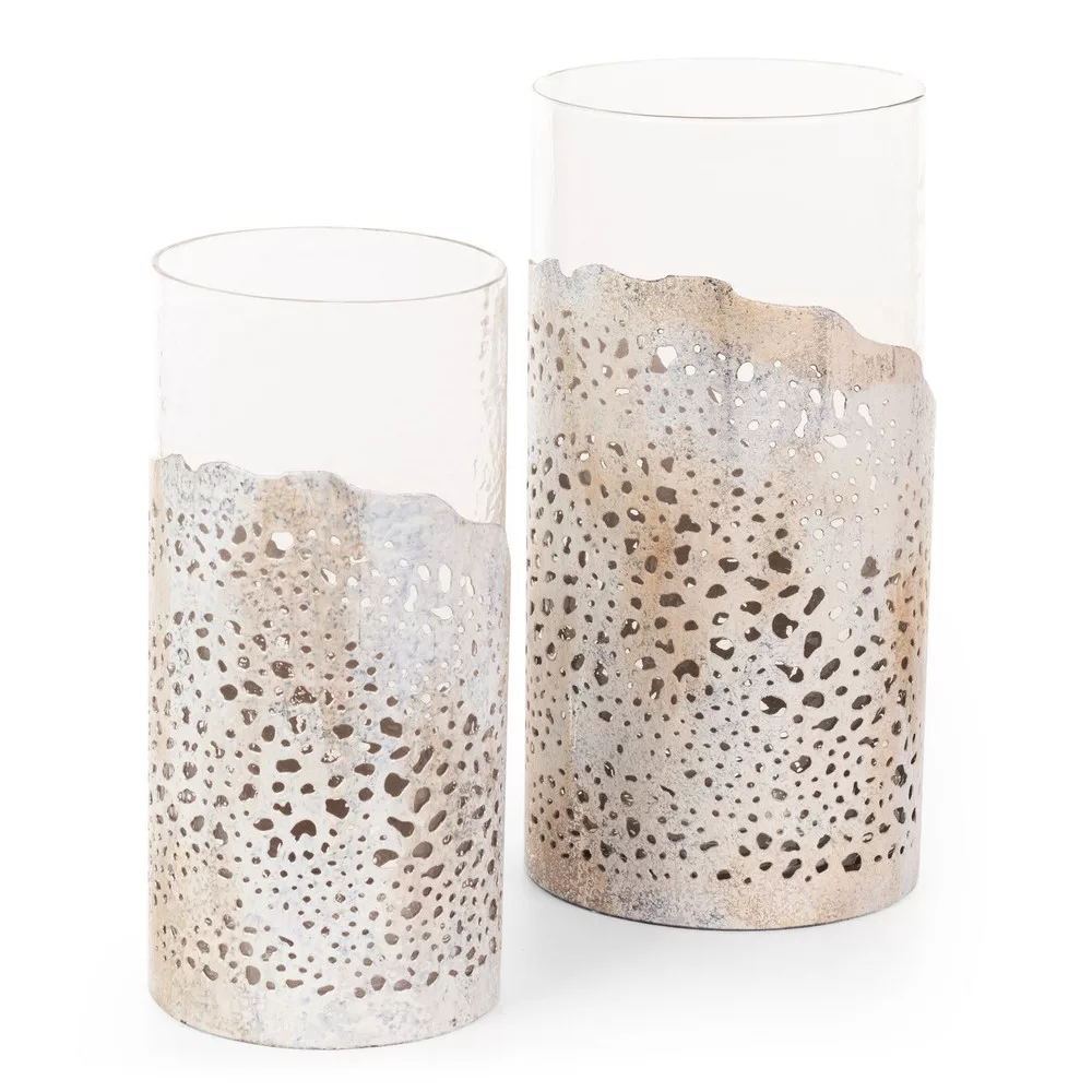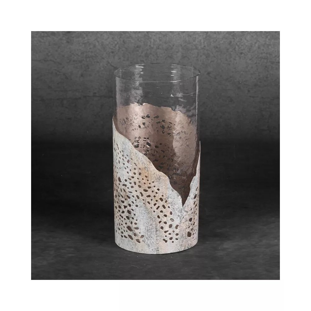 Dimon üveg gyertyatartó Bézs 13x13x27 cm