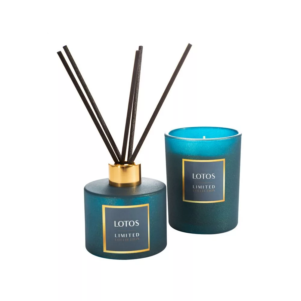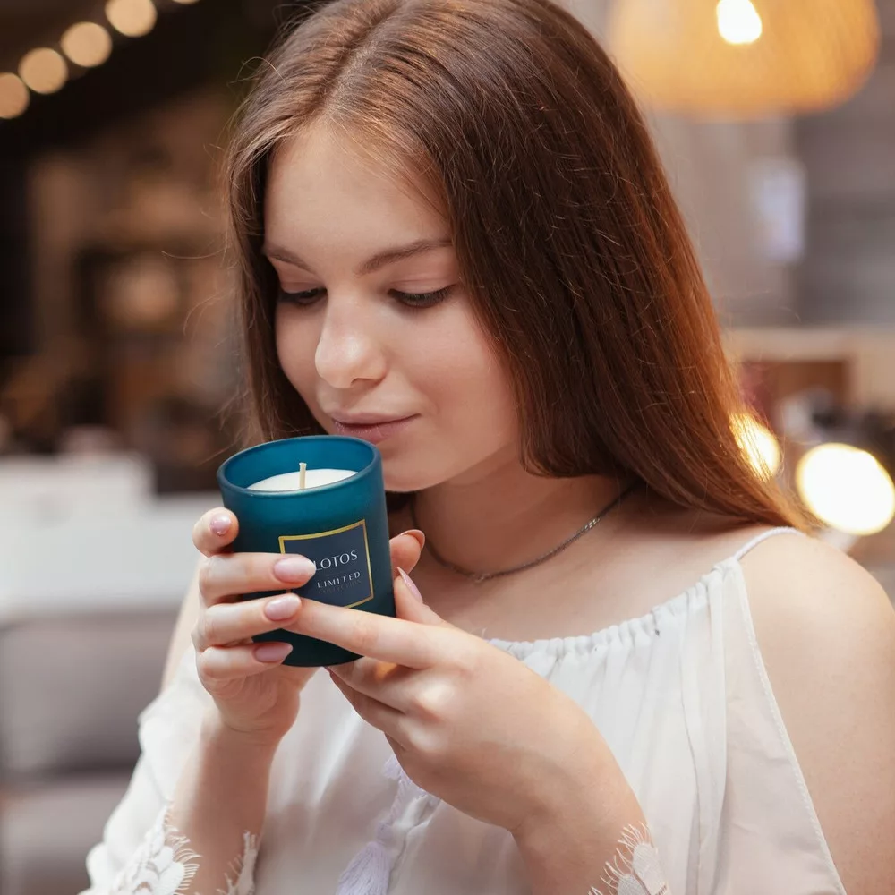 Lotos illatos gyertya dekorüvegben Petrolkék 200g