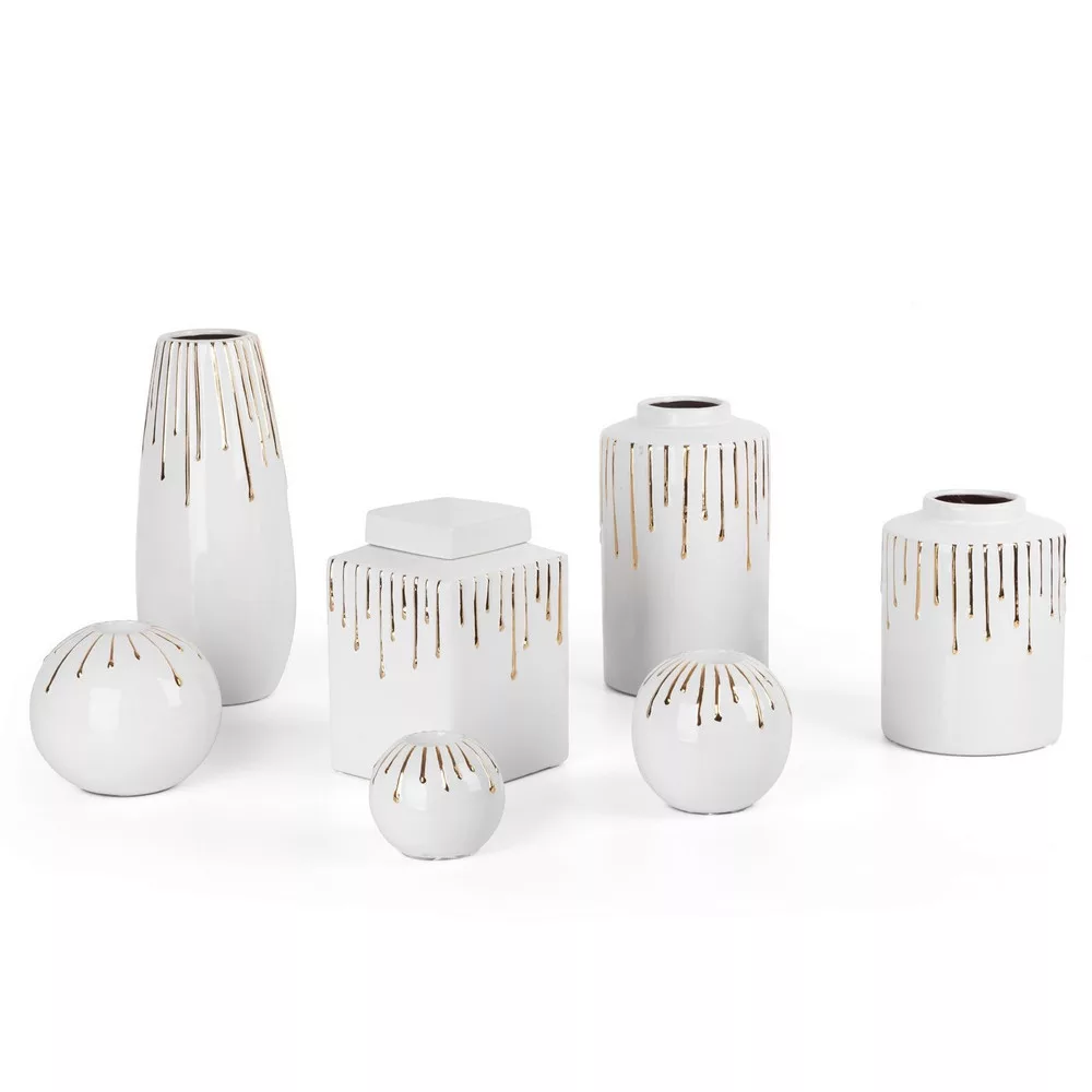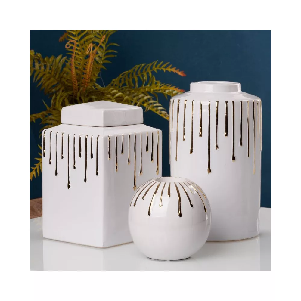 Luis 03 kerámia gyertyatartó Fehér/arany 15x15x13 cm