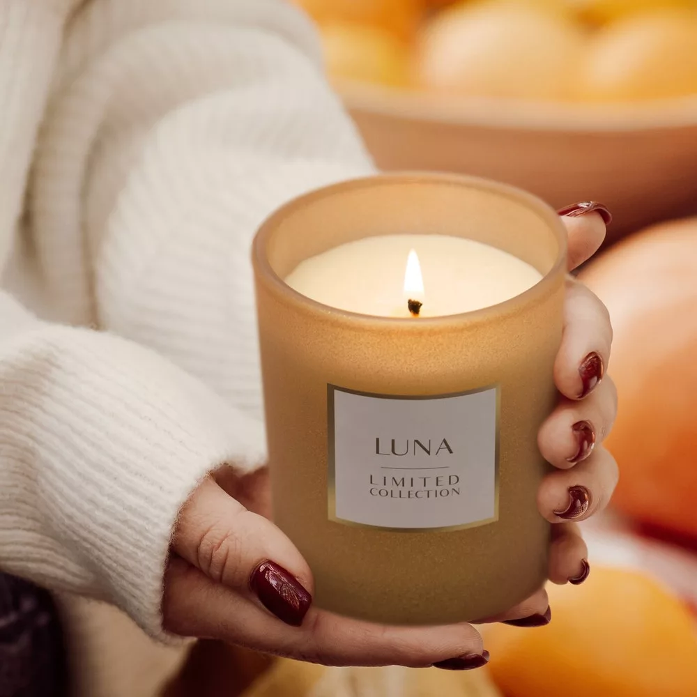 Luna illatos gyertya dekorüvegben Bézs 200g