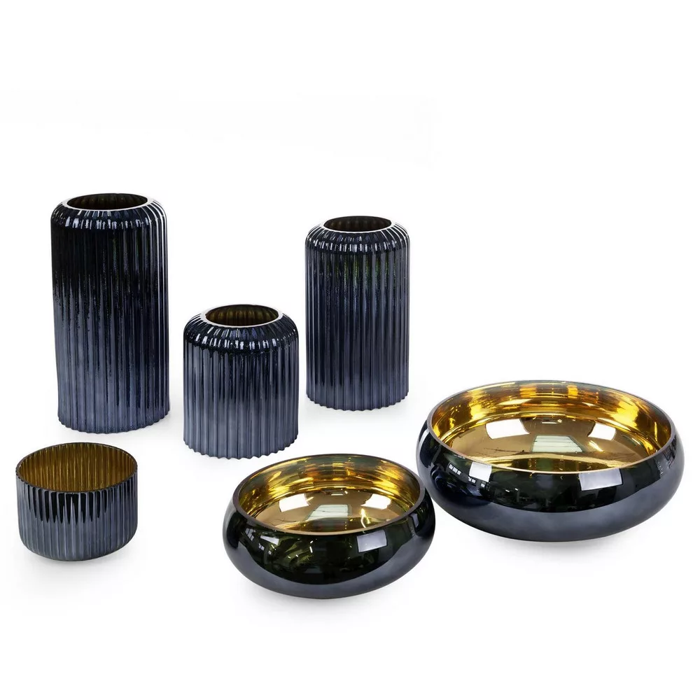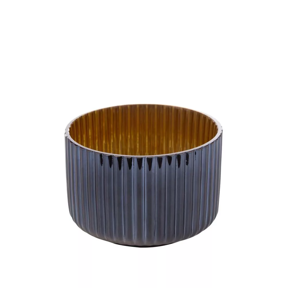 Nela3 üveg gyertyatartó Gránátkék/arany 12x8 cm