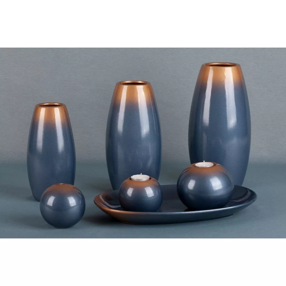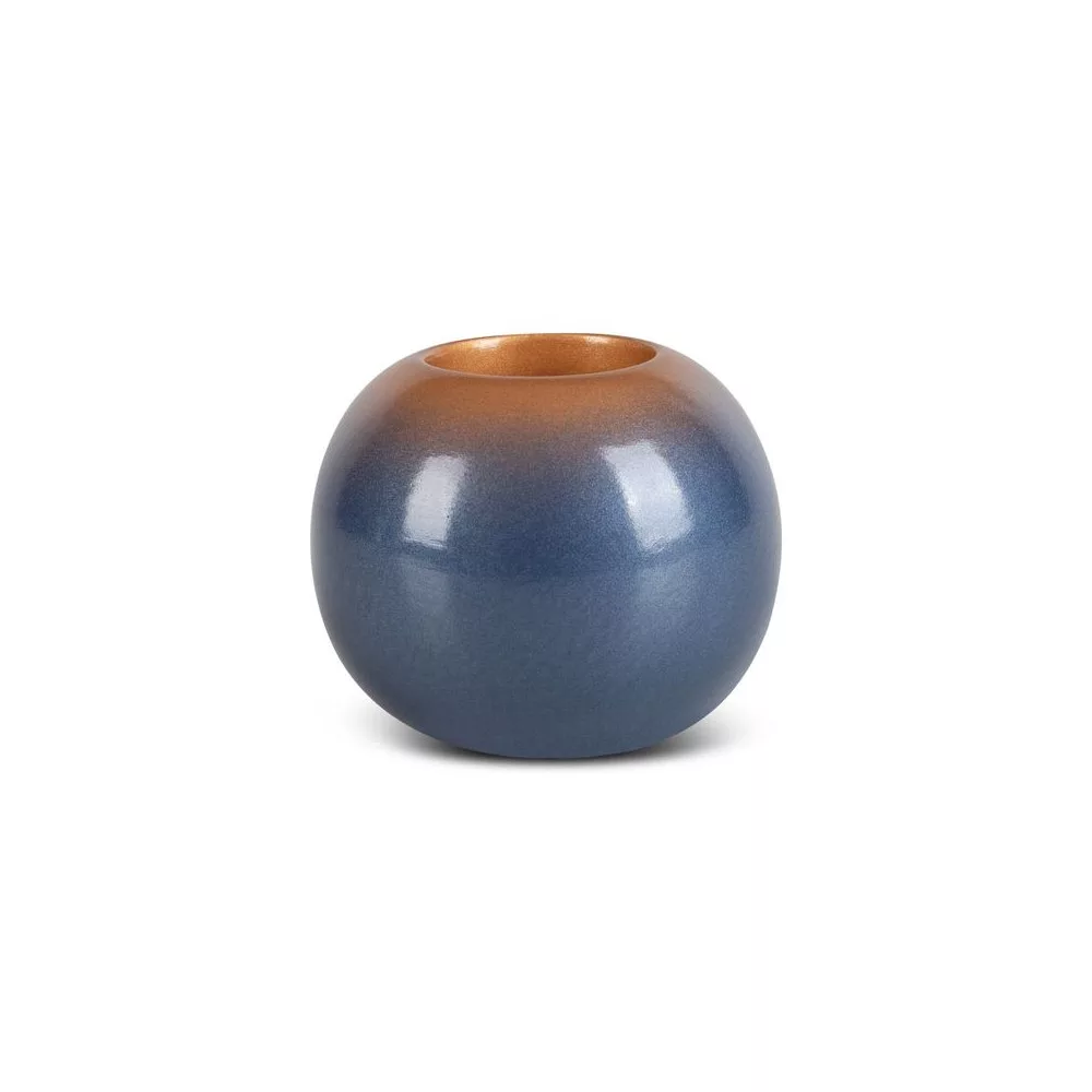 Nessa 02 kerámia gyertyatartó Kék/arany 10x10x9 cm