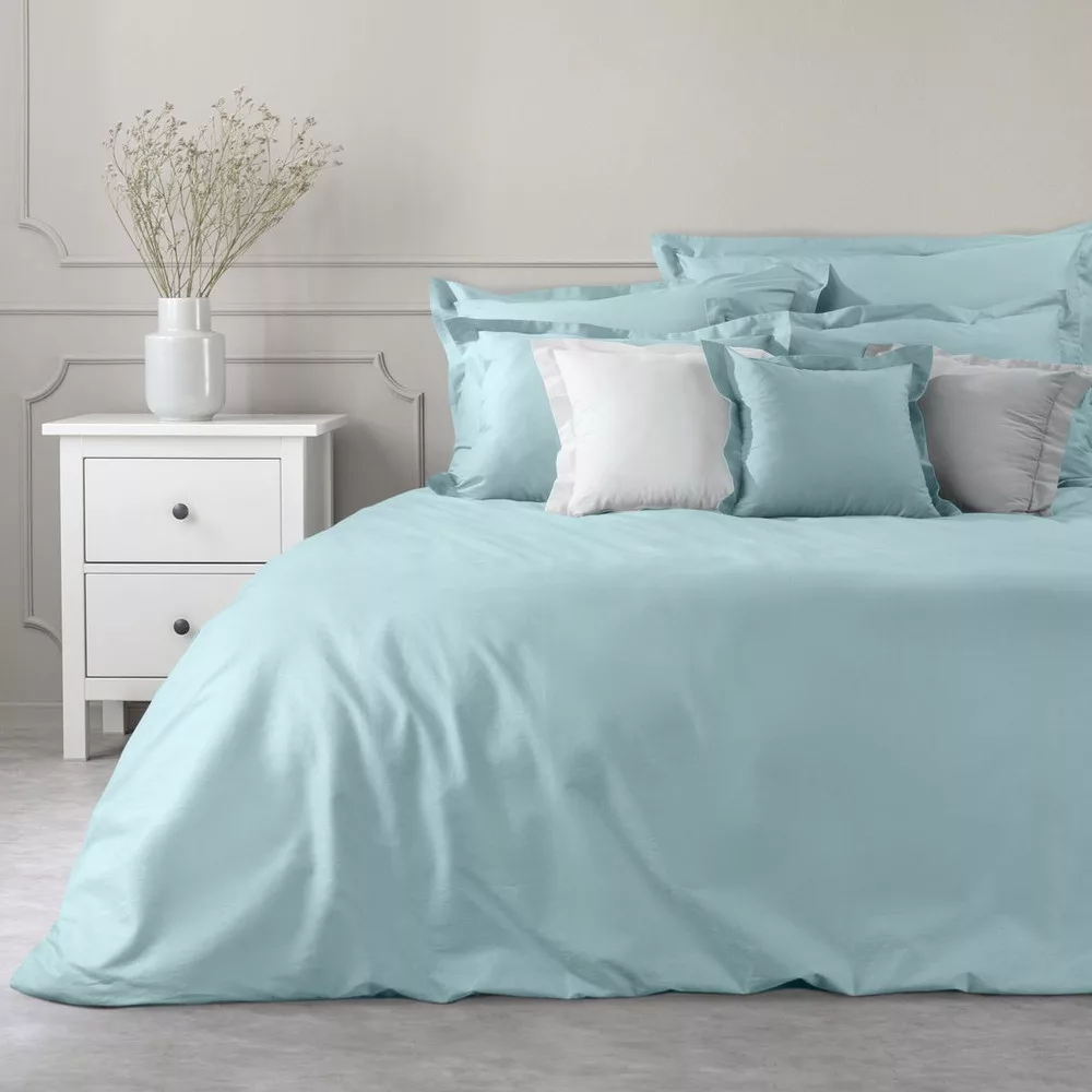 Cotton párnahuzat szatén fényű és dekoratív él, mérete: 70 x 90 cm-es, a kék szín. A alaptömege 115 GSM. Összetétel: 100% pamut