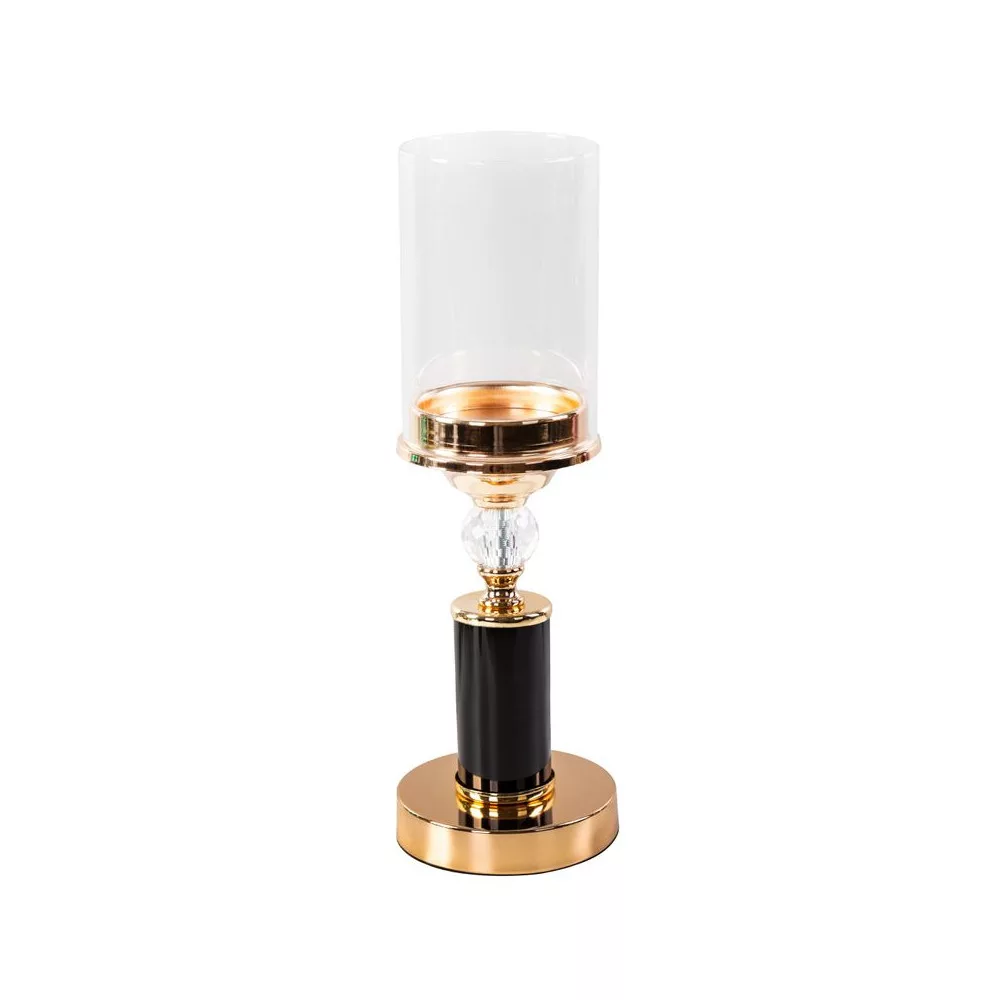 Ria kristály díszes gyertyatartó üveg búrával Arany 12x37 cm