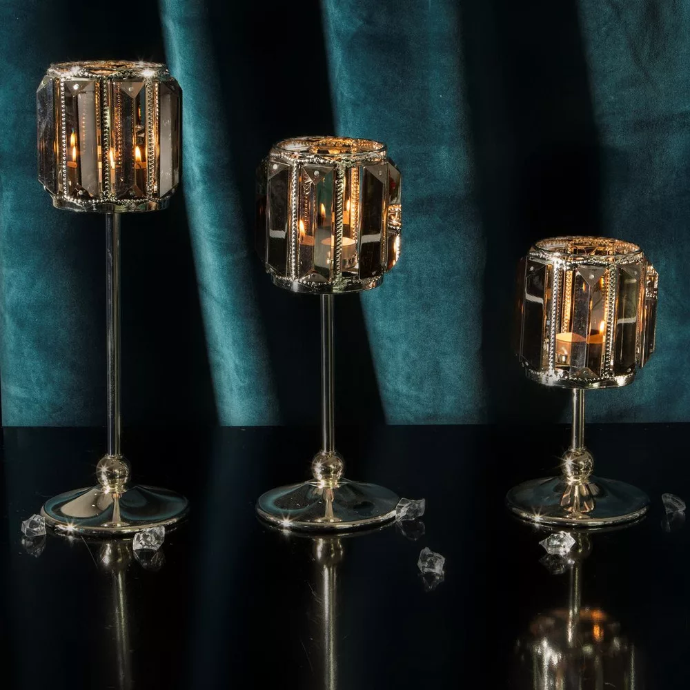 Roni talpas gyertyatartó kristályokkal Ezüst 10x14 cm