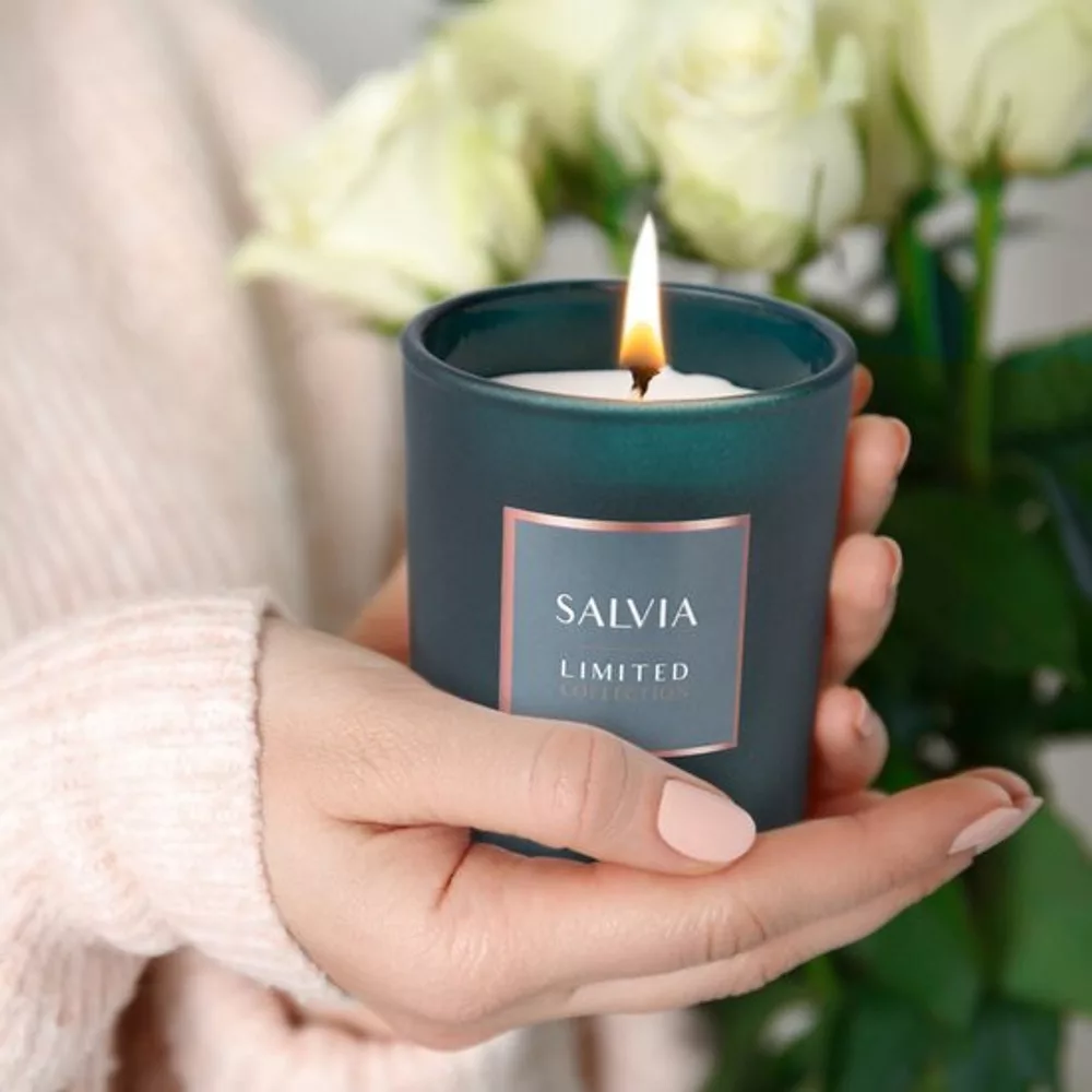 Salvia illatos gyertya dekorüvegben Sötétzöld 200g