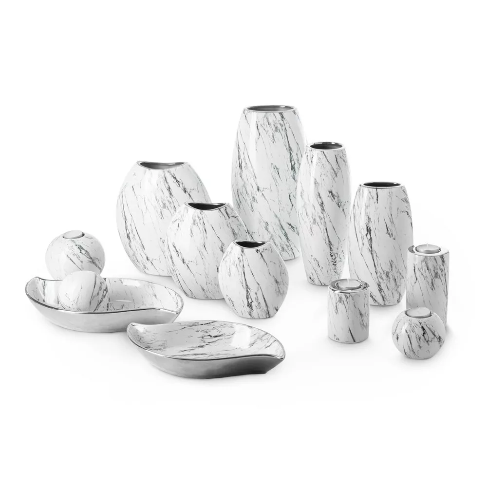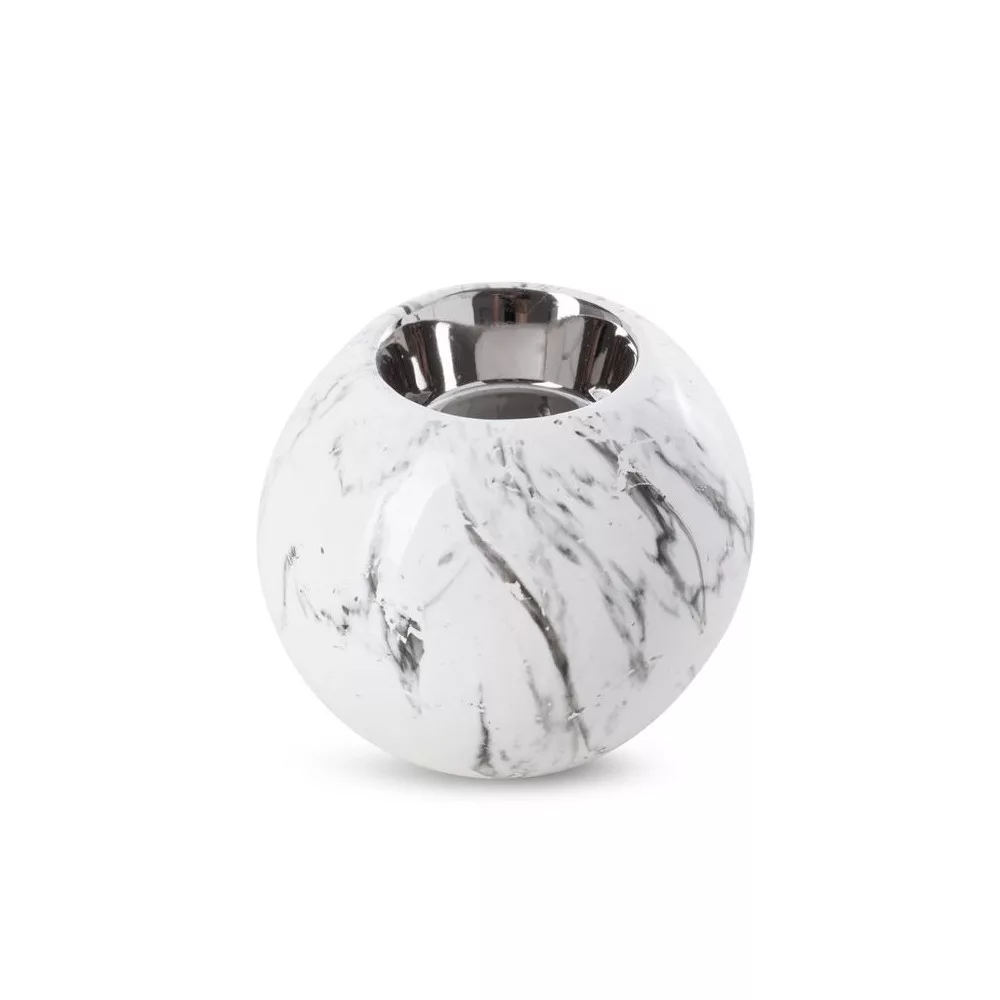 Sana gyertyatartó márványos mintával Fehér 9x9x8 cm