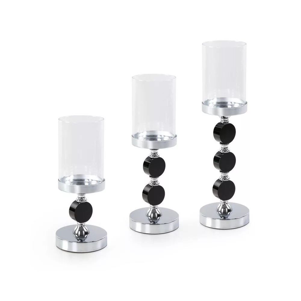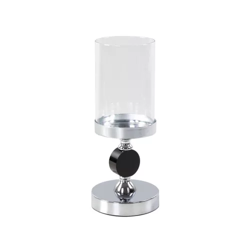 Toledo dekoratív gyertyatartó üveg búrával Ezüst/fekete 12x30 cm