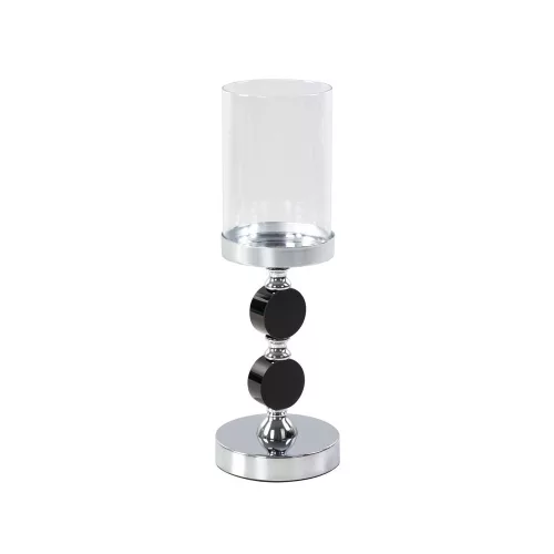 Toledo dekoratív gyertyatartó üveg búrával Ezüst/fekete 12x35 cm