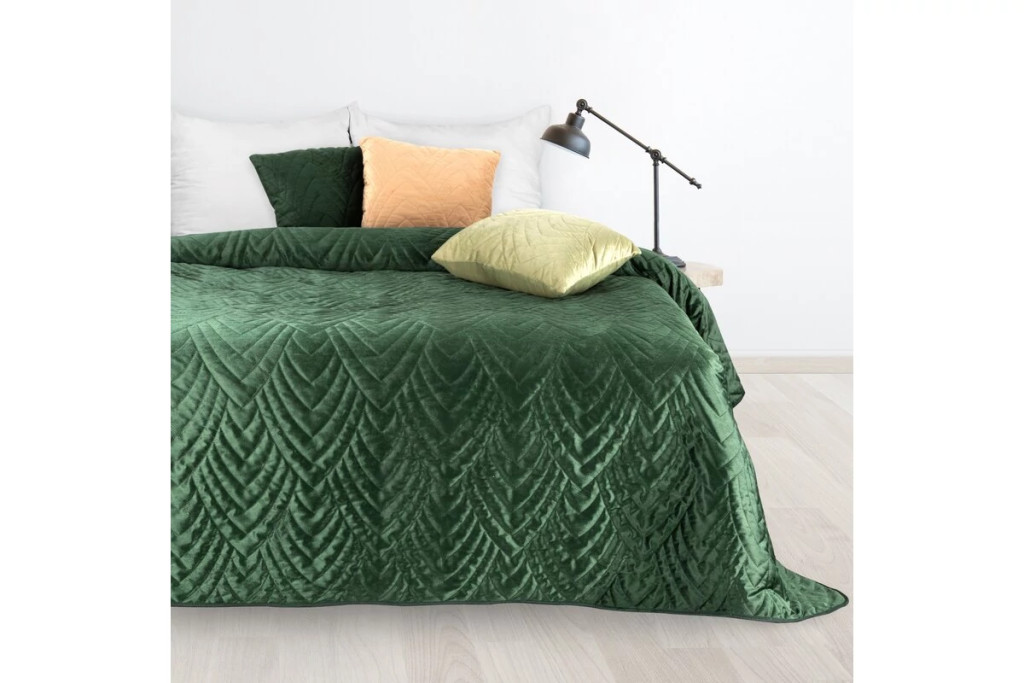 Luiz6 bársony ágytakaró fényes márvány hatású mintával Sötétzöld 220x240 cm