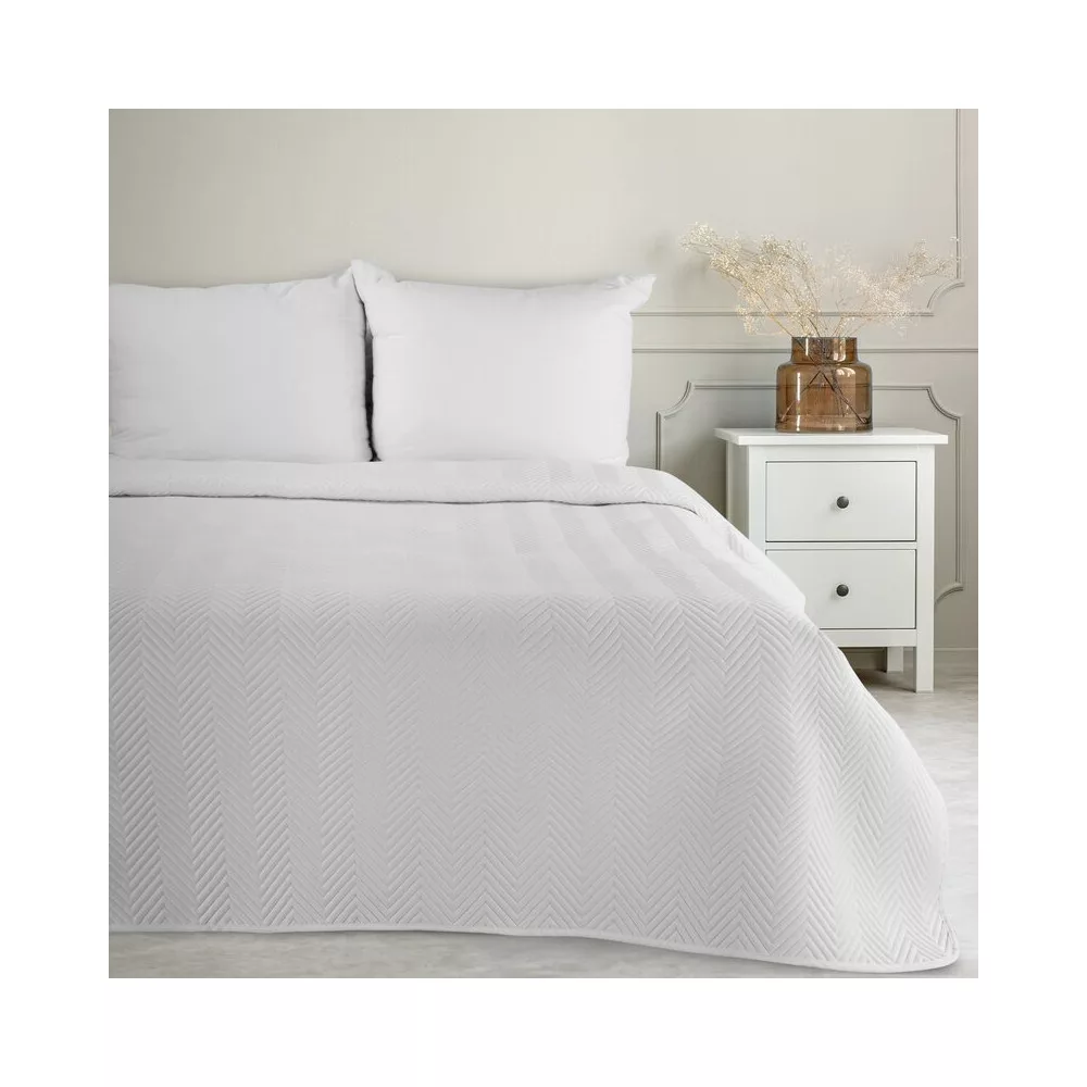 Len3 vászon szerkezetű préselt mintás ágytakaró Fehér 170x210 cm